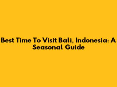 Best Time To Visit Bali, Indonesia: A Seasonal Guide