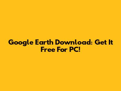 Google Earth Download: Get It Free For PC!