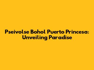 Pseivolse Bohol Puerto Princesa: Unveiling Paradise