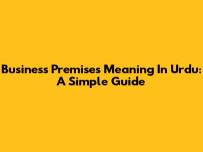 Business Premises Meaning In Urdu: A Simple Guide