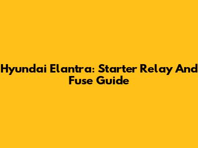 Hyundai Elantra: Starter Relay And Fuse Guide