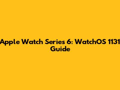 Apple Watch Series 6: WatchOS 1131 Guide