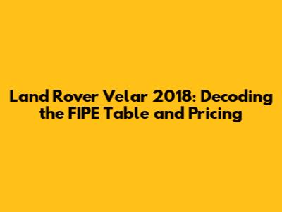 Hey everyone! If you're diving into the world of luxury SUVs, the Land Rover Velar 2018 is definitely on your radar, right? It's a seriously stylish ride, combining sleek design with Land Rover's legendary off-road capabilities. But before you get too excited about cruising in one, let's talk about the nitty-gritty: the FIPE table and, you know, how much it's actually going to cost you. Understanding the FIPE table is super important when you're looking to buy or sell a used car, and especially when you're considering a premium vehicle like the Velar. So, let's break it down and get you up to speed on everything you need to know about the Land Rover Velar 2018 FIPE table. This guide will cover everything from what the FIPE table is, to how it impacts your purchase, and where to find the most accurate information. Buckle up, guys, because we're about to dive in!