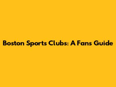 Boston Sports Clubs: A Fan's Guide