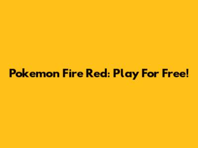 Pokemon Fire Red: Play For Free!