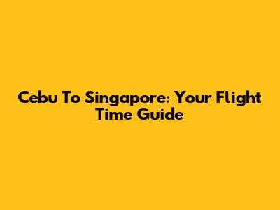 Cebu To Singapore: Your Flight Time Guide