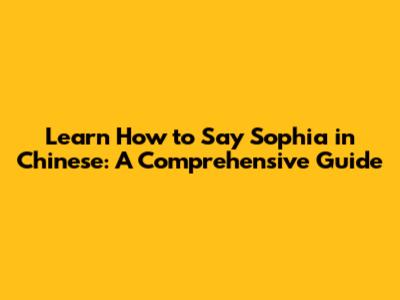 Hey there, language enthusiasts! Ever wondered how to say the beautiful name "Sophia" in Chinese? Well, you're in the right place! This guide is your ultimate ticket to understanding the nuances of translating and pronouncing "Sophia" in Mandarin Chinese. We'll dive into the different ways the name can be represented, the cultural significance, and even some fun facts to make your learning journey super interesting. So, buckle up, because we're about to embark on an exciting linguistic adventure!