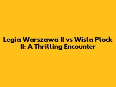 Hey guys! Let's dive deep into a recent football match that had everyone on the edge of their seats: Legia Warszawa II versus Wisla Plock II. This wasn't just any game; it was a clash of titans in the reserve league, filled with action, drama, and some seriously impressive plays. We're going to break down everything from the key moments and standout performances to the tactics employed by each team. Get ready for a comprehensive match analysis that'll make you feel like you were right there on the pitch! We'll cover everything, from the pre-game buzz to the final whistle, making sure you don't miss a single detail. So, grab your favorite snack, settle in, and let's get started. This analysis is going to be packed with insights, ensuring you have a full understanding of what went down. Whether you're a die-hard fan of Legia Warszawa, a loyal supporter of Wisla Plock, or simply a football enthusiast, this is the perfect place to get your match fix. Let's explore the key takeaways, player performances, and tactical nuances that defined this captivating encounter. The objective is to provide a comprehensive overview that satisfies your curiosity and enhances your understanding of the game. Now, let's look at the match and reveal what truly happened on the field.