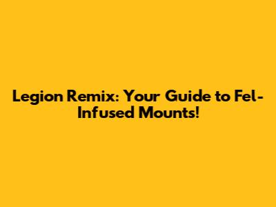 Hey guys! Are you ready to dive back into the epic world of Legion, but with a fresh twist? The Legion Remix event is here, and it's bringing tons of awesome stuff, including a chance to snag some seriously cool fel-infused mounts! In this article, we're going to break down everything you need to know about getting your hands on these fiery steeds, from the basics to the nitty-gritty details. We'll cover where to find them, what you need to do to get them, and even a few tips and tricks to make the process smoother. Get ready to ride into battle on a mount that screams power and style! Whether you're a seasoned veteran or a newcomer to the Legion expansion, there's something here for everyone. Let's get started and explore the exciting world of Legion Remix fel-infused mounts! This is your ultimate guide to turning your mount collection into a burning testament to your achievements. These mounts aren't just for show; they're a symbol of dedication and a badge of honor for anyone willing to brave the challenges of the Legion Remix. Let's make sure you're fully equipped with the knowledge to bring these iconic creatures into your stables, ready to take your character to the next level. So buckle up, because we're about to embark on a fiery adventure to acquire the most sought-after mounts in the game. You're going to want to take notes, because missing out on these fel-infused mounts is not an option. Keep in mind that this event is temporary, so time is of the essence! With this guide, your mount collection will be the envy of everyone! We'll cover how to obtain them, the requirements needed, and any helpful tips to make the process easier. These mounts are more than just cosmetic; they represent a significant accomplishment within the Legion Remix event, and owning one will undoubtedly boost your prestige. Let’s dive into the details so you can prepare yourself for the exciting journey of acquiring these magnificent steeds.