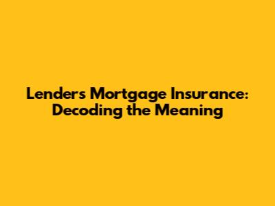 What Exactly is Lenders Mortgage Insurance?