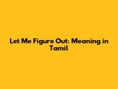 Hey guys! Ever found yourself racking your brain trying to translate a phrase from English to Tamil? Today, we're diving deep into understanding the meaning of the phrase "let me figure out" in Tamil. Trust me, it’s not as straightforward as a simple word-for-word translation. We'll explore the various nuances and contexts in which you might use this phrase, ensuring you’re equipped to communicate effectively. So, buckle up and get ready to expand your Tamil vocabulary!