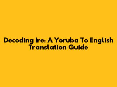 Decoding 'Ire': A Yoruba To English Translation Guide