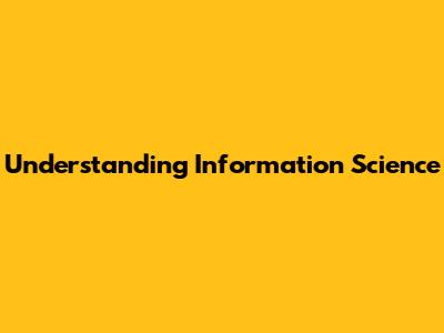 Understanding Information Science