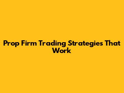 Prop Firm Trading Strategies That Work