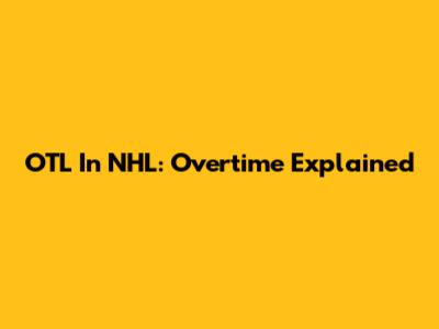 OTL In NHL: Overtime Explained