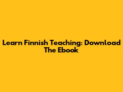 Learn Finnish Teaching: Download The Ebook