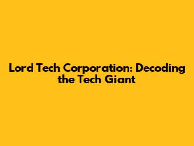 Exploring the Impact of Lord Tech Corporation on the Tech Industry