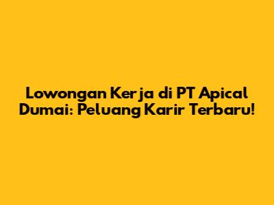 Lowongan Kerja PT Apical Dumai: Peluang Karir Terbaru!