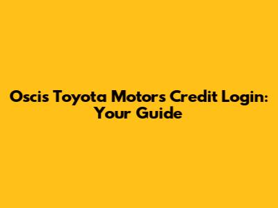 Oscis Toyota Motors Credit Login: Your Guide