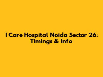 I Care Hospital Noida Sector 26: Timings & Info