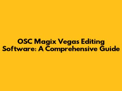 OSC Magix Vegas Editing Software: A Comprehensive Guide