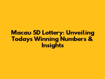 Hey everyone, let's dive into the exciting world of the Macau 5D lottery! If you're here, chances are you're curious about today's winning numbers, right? Well, you've come to the right place. While I can't magically predict the future, I can give you a comprehensive overview of what the Macau 5D lottery is all about, how it works, and where you might find the latest information and potential insights. This isn't just about throwing numbers around; it's about understanding the game, looking at past trends (if you're into that!), and making informed decisions (or just enjoying the thrill of the draw!). So, buckle up, and let's explore the ins and outs of the Macau 5D lottery together. Remember, the lottery is all about chance, but having a bit of knowledge can make the experience even more fun. Let's get started, shall we?