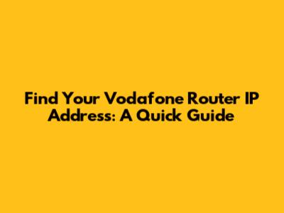 Find Your Vodafone Router IP Address: A Quick Guide