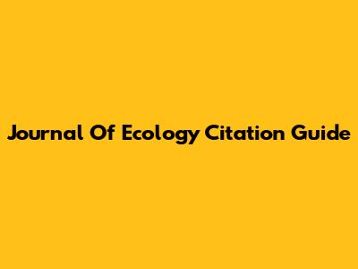 Journal Of Ecology Citation Guide