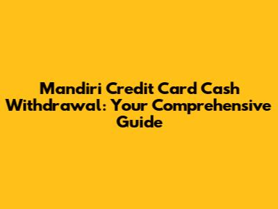Hey guys, let's dive into the world of Mandiri credit card cash withdrawals. We'll cover everything from how it works to the fees involved and some handy tips to help you make the most of this feature. Understanding how to use your credit card for cash can be super convenient in a pinch, but it's essential to know the ins and outs to avoid any surprises. So, grab a coffee, and let's get started!
