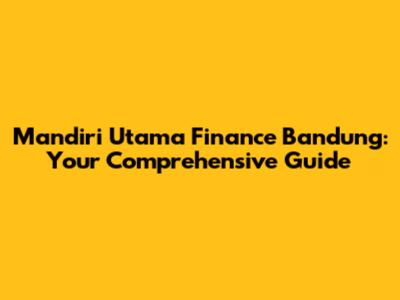 Hey there, finance enthusiasts! Ever found yourself pondering over your financial options, especially if you're in the vibrant city of Bandung? Well, you're in luck! Today, we're diving deep into Mandiri Utama Finance Bandung, exploring everything you need to know about this financial powerhouse. From their services to the nitty-gritty details, we'll uncover it all. So, buckle up, grab your favorite beverage, and let's embark on this exciting journey together. Whether you're a seasoned investor or just starting out, this guide is designed to provide valuable insights and information to help you make informed decisions. We'll be breaking down complex topics into easy-to-understand chunks, ensuring you grasp the essence of Mandiri Utama Finance Bandung and how it can potentially benefit your financial goals. Let's get started, shall we?