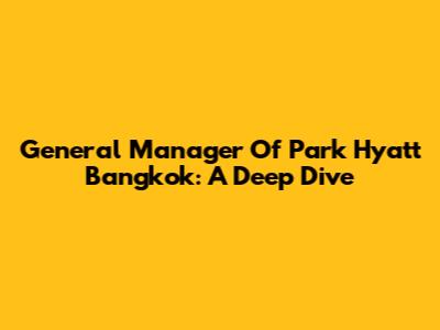 General Manager Of Park Hyatt Bangkok: A Deep Dive
