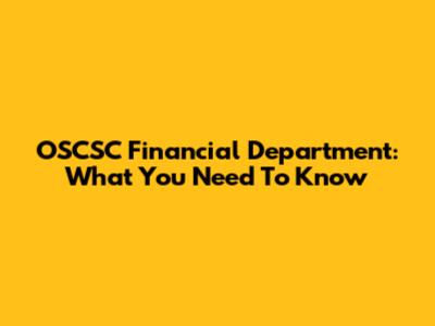 OSCSC Financial Department: What You Need To Know