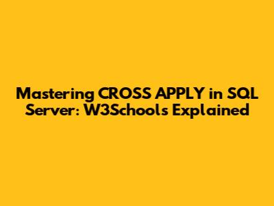 Hey everyone! Ever felt like you're wrestling with SQL Server, trying to pull off some really specific data maneuvers, and your usual INNER JOIN or LEFT JOIN just isn't cutting it? You're not alone, guys. That's where a super powerful, yet often overlooked, operator called CROSS APPLY comes into play. If you've ever dipped your toes into SQL learning, chances are you've heard of W3Schools as a go-to resource for explanations. While this article isn't a direct copy of W3Schools, we're going to break down CROSS APPLY in a similar, easy-to-understand fashion, making sure you grasp its true potential and how it can totally elevate your SQL game. This isn't just about syntax; it's about understanding why and when to use this bad boy to solve complex problems that traditional joins struggle with. We'll dive deep into its mechanics, compare it to what you already know, and walk through some practical examples that will make you say, "Aha!" By the end of this read, you'll not only understand CROSS APPLY but also feel confident applying it in your own queries, turning those tricky data challenges into satisfying triumphs. Get ready to add a seriously cool tool to your SQL toolkit, because once you get CROSS APPLY, there's no going back. It opens up a whole new world of possibilities for handling intricate data relationships and dynamic table-valued functions. So, let's stop just joining tables and start applying our way to better data solutions, making our queries more efficient and elegant. We're going to explore scenarios where this operator shines, demonstrating how it can simplify complex logic and provide results that would otherwise require multiple steps or cumbersome subqueries. Let's make sure you're not just writing SQL, but writing smart SQL!