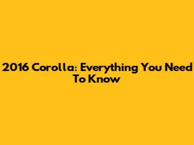 2016 Corolla: Everything You Need To Know