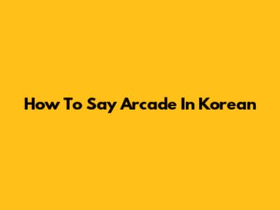 How To Say Arcade In Korean