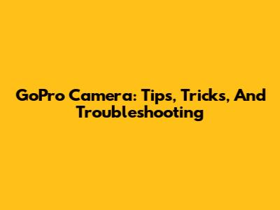 GoPro Camera: Tips, Tricks, And Troubleshooting