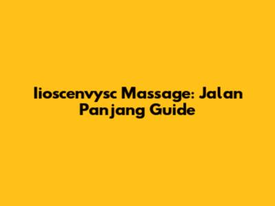 Iioscenvysc Massage: Jalan Panjang Guide
