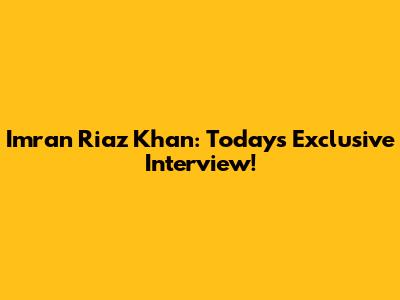 Imran Riaz Khan: Today's Exclusive Interview!