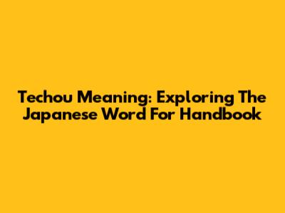 Techou Meaning: Exploring The Japanese Word For Handbook