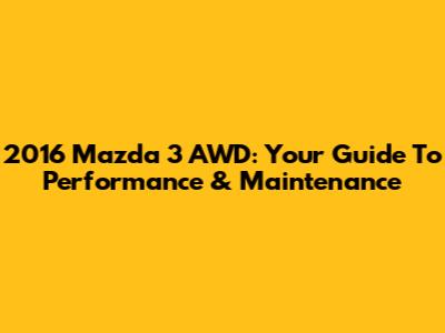 2016 Mazda 3 AWD: Your Guide To Performance & Maintenance