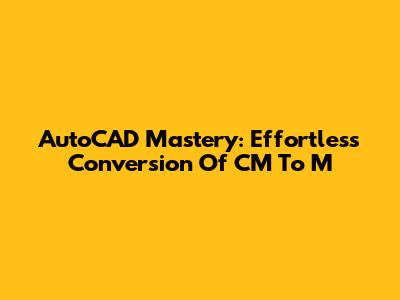 AutoCAD Mastery: Effortless Conversion Of CM To M
