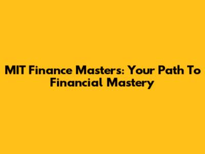 MIT Finance Masters: Your Path To Financial Mastery