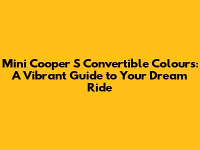 Hey there, car enthusiasts! Ever dreamt of cruising down the road in a stylish, sporty convertible, with the wind in your hair and the sun on your face? If you're nodding along, then you're probably already a fan of the Mini Cooper S Convertible. And if you're not, well, get ready to be! One of the most exciting parts of buying a new car is choosing its colour, right? So, let's dive headfirst into the amazing world of Mini Cooper S Convertible colours and find the perfect match for your personality and style. We'll explore the classic choices, the bold statements, and the unique hues that make this iconic car so irresistible.