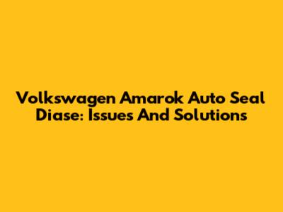 Volkswagen Amarok Auto Seal Diase: Issues And Solutions