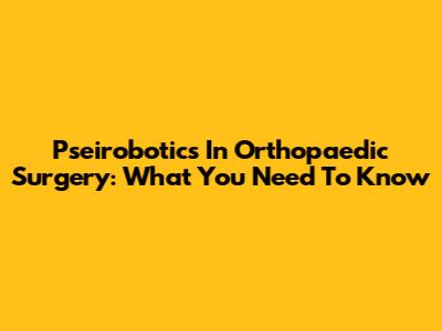Pseirobotics In Orthopaedic Surgery: What You Need To Know