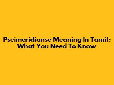 Pseimeridianse Meaning In Tamil: What You Need To Know