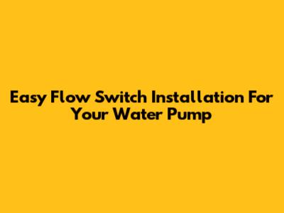 Easy Flow Switch Installation For Your Water Pump
