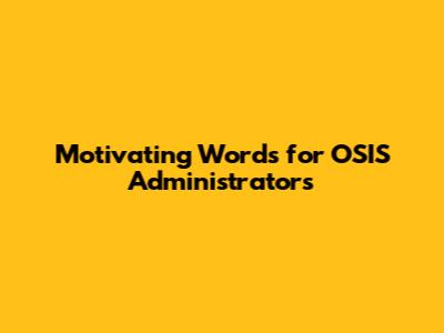So, there you have it, OSIS administrators! Keep these words in mind as you navigate your leadership journey. Remember, your role is vital, your impact is significant, and your potential is limitless. Go out there and make a difference! You got this!