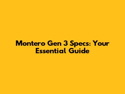 Montero Gen 3 Specs: Your Essential Guide
