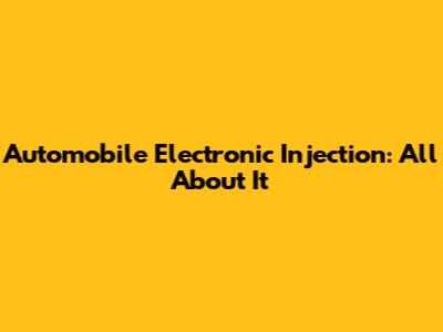 Automobile Electronic Injection: All About It